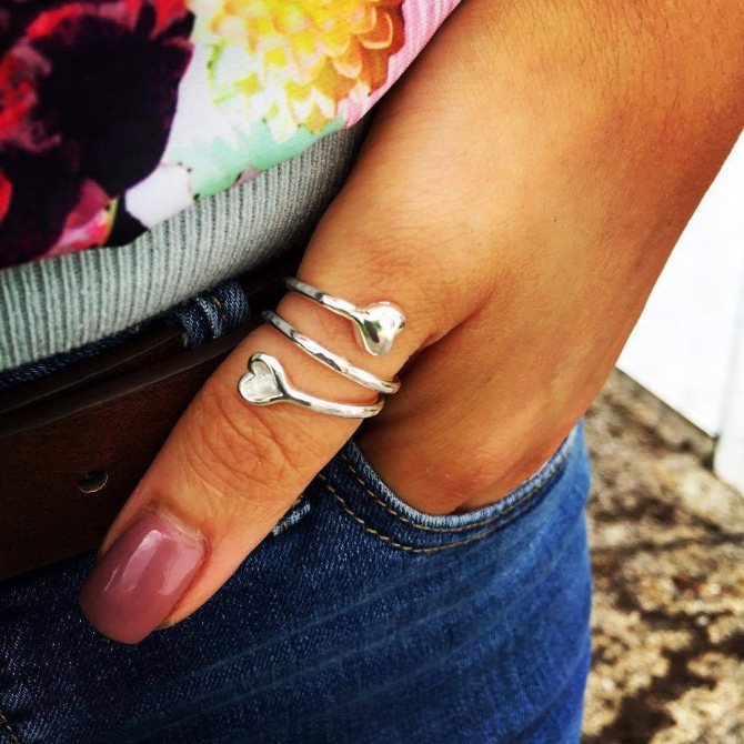 It is not necessary to wear a ring of precious metal. It is quite logical to adorn your index finger with a ring of pewter or other metal. If a girl wears a ring on this finger, it means that she intends to conquer and conquer everything and everyone.