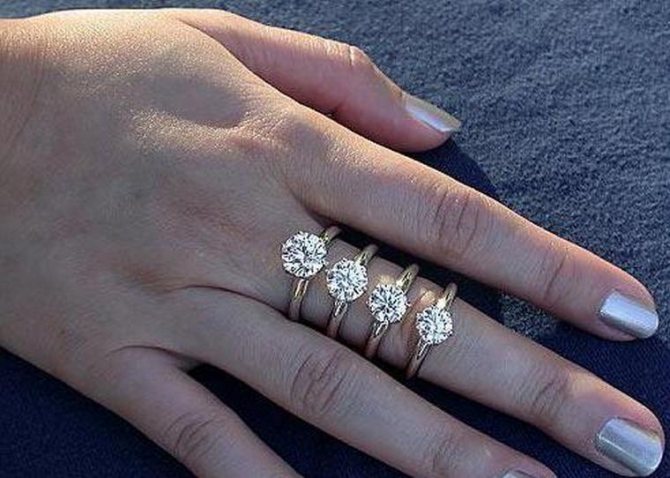 One carat is 0.2 g. The smallest cut diamond weighs 0.01 carats. They are used in the manufacture of rings, but it is quite difficult to see them - they are 1 mm in diameter or less. The bigger the carat of the diamond, the bigger the stone itself. Of course, a big stone absorbs and reflects more light, so it looks more spectacular than a small one. However, a large diamond does not mean that it belongs to the high class. Its cut and proportions may be far from ideal, causing it to lose its brilliance and appearance. When choosing the perfect diamond ring, both the grade and the carat size of the stone should be taken into consideration.