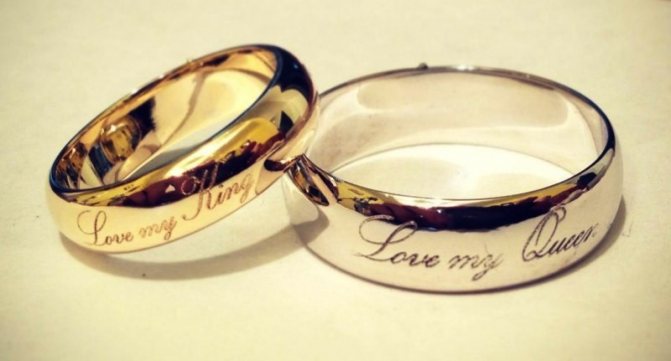 The classic thin ring, which has a thickness of 2-5 mm, indicates that neither of the lovers will even think about cheating and the marriage itself promises to be long and peaceful. A ring that is more than 5mm thick indicates that the couple is trying to hold the marriage together, on an intuitive level. And if your rings are decorated with stones, it indicates ardent and passionate feelings.