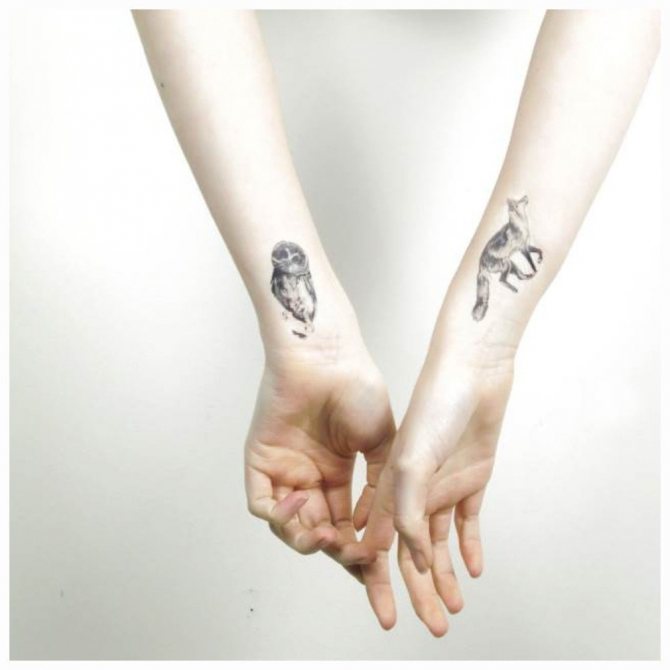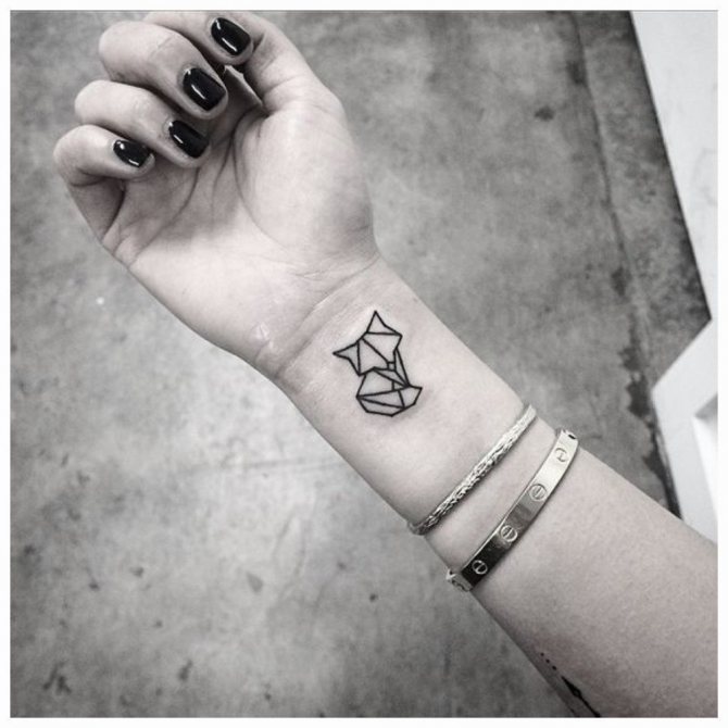 On the hand of a girl you can also make a beautiful tattoo of animals. It is interesting to note that it does not look rude at all. Such tattoos are usually preferred by men, but, girls can also choose a beautiful silhouette of a squirrel, a chanterelle, a swallow for a tattoo. It looks gentle and fabulous.