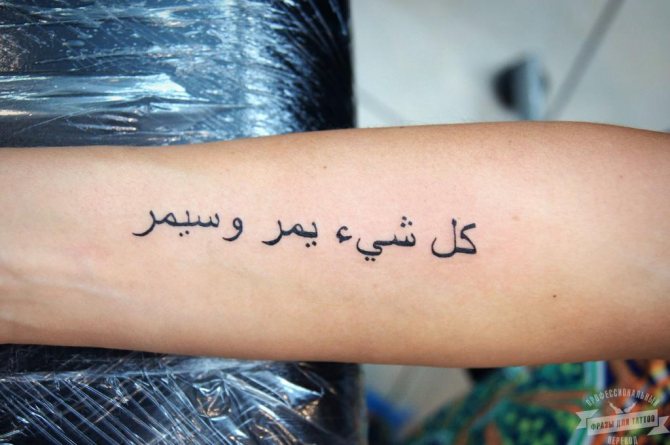 Tattoos Arabic inscriptions with translation deserve special attention in the art of placing patterns on the body. They have quite an interesting history. This is important if you want to show your tattoo a connection to Eastern culture or inherit its traditions.