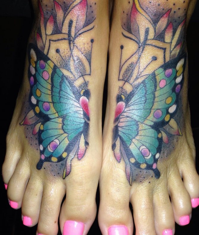 Tattoo "butterfly" (value for girls varies depending on the selected zone) can look good on any part of the body. In small areas (wrist, ankle) is better to apply a single butterfly, on large (hip, shoulder blade, shin) looks good large composition.