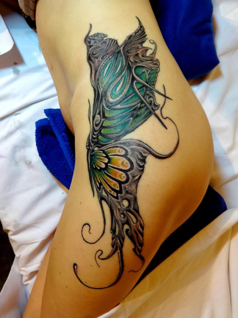 Butterfly tattoo on the waist