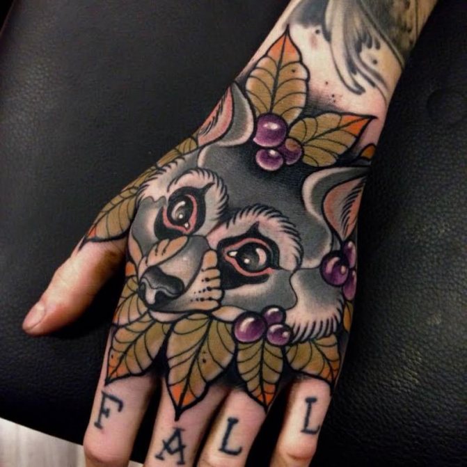 - Images on the hands heal long and difficult, because this is the most open and active area of the body. Such tattoos require regular sessions of correction, because they quickly lose their color and clarity of outlines.