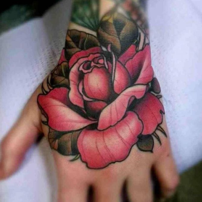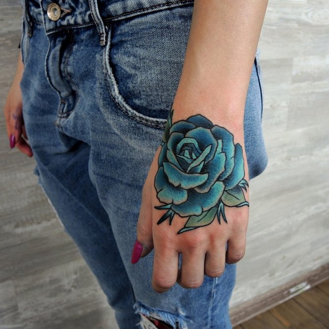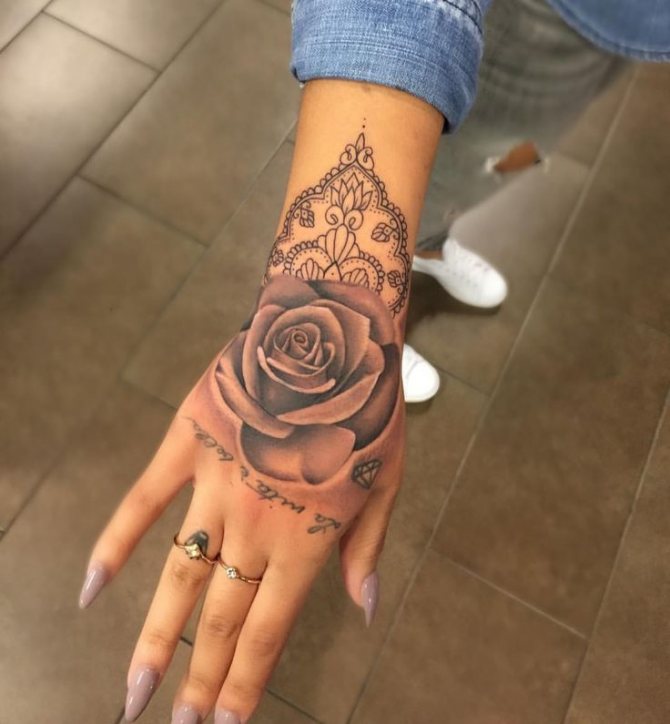 Floral motifs are the most popular solution among the fair sex. And tattoos with roses on hands and at all occupy a place of honor.