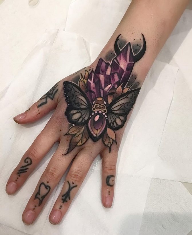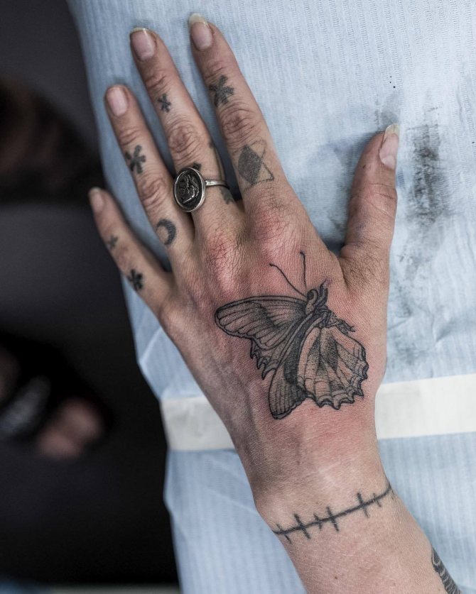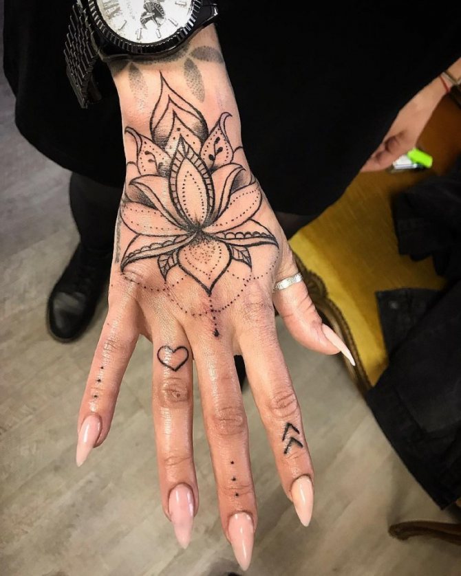 - The process of tattooing this part of the body is, to put it mildly, painful. Here, the bone is as close as possible to the skin, and there is no fat pad. The skin on the hand is extremely sensitive, so for girls with a low pain threshold, the application procedure can turn into a living hell.