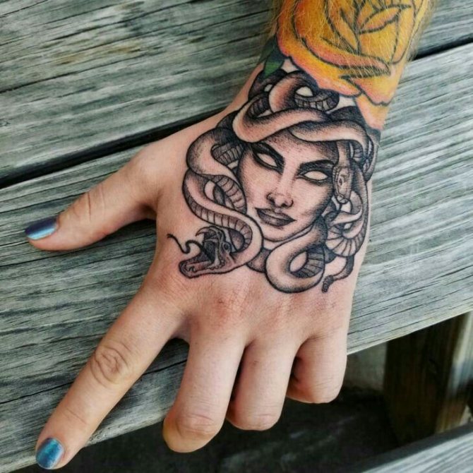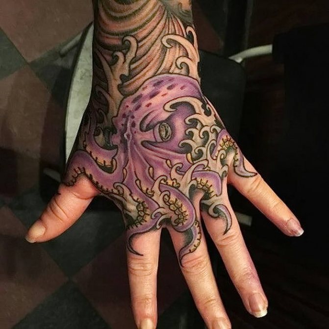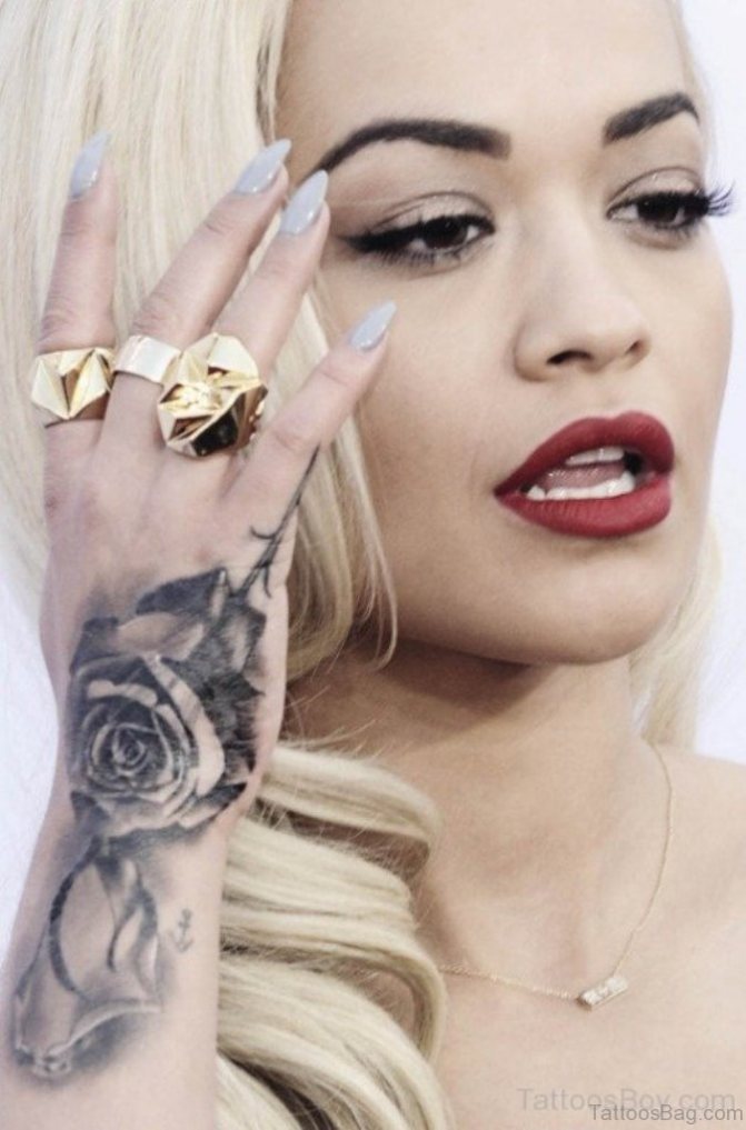 As a rule, such tattoos prefer creative individuals and representatives of public professions. After all, the tattooed female hand in any case, will attract attention and leave this or that trace in the memory. Girls with a bold temperament, rebelling against the rigid restrictions and sameness, also often resort to tattooing fingers and hands.