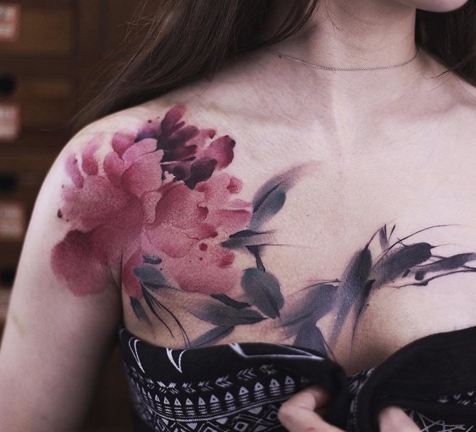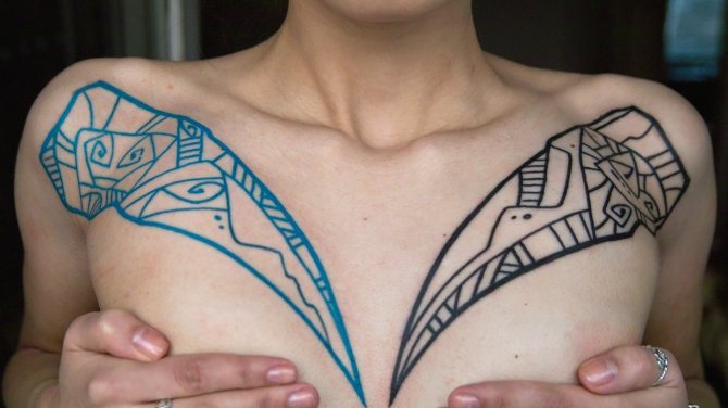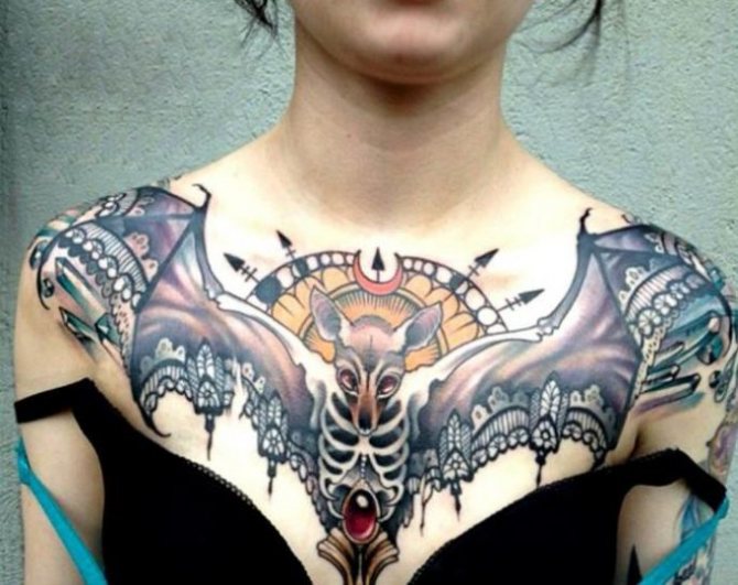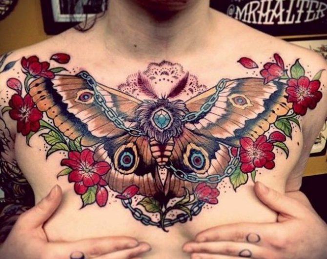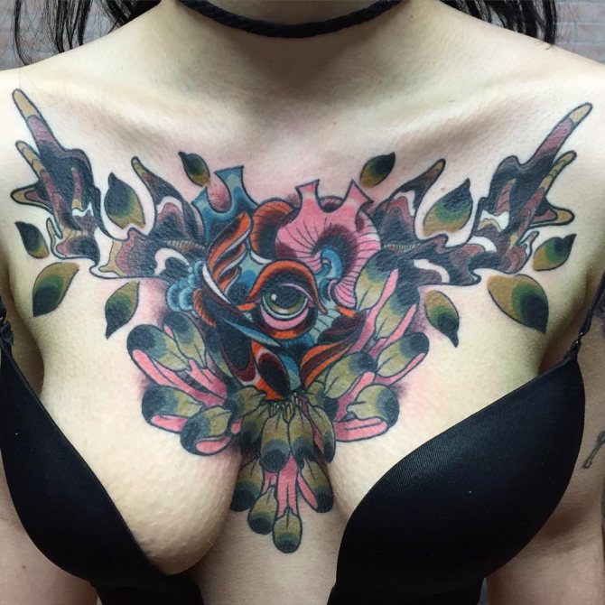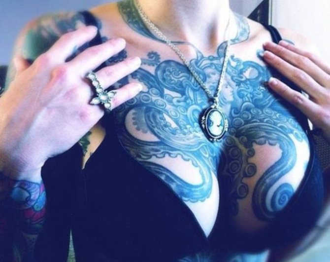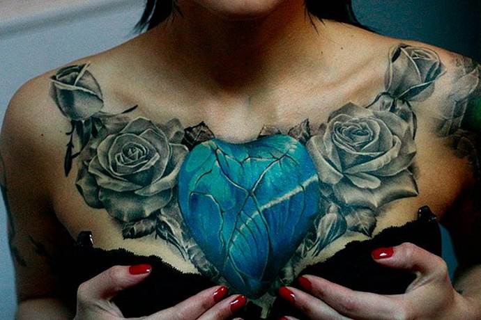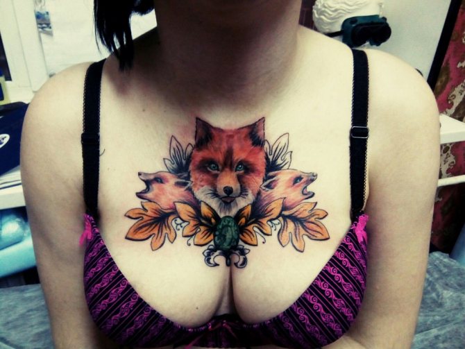 By the way, colorful and voluminous tattoos, placed on the chest or chest, very much suit the beauties in the body.