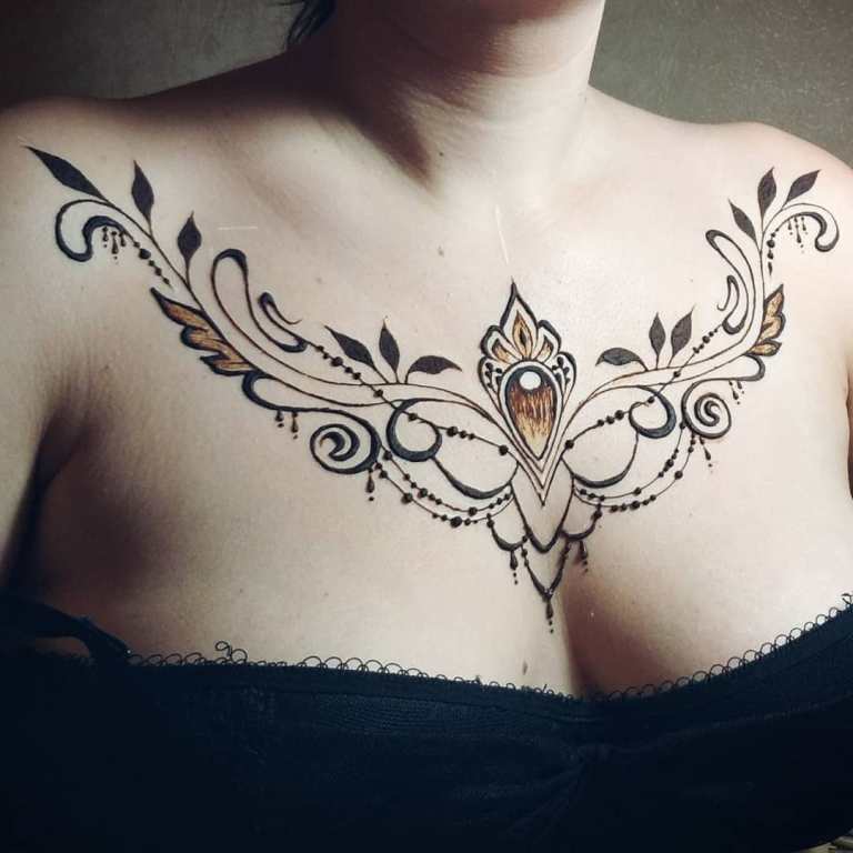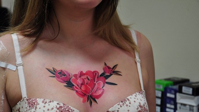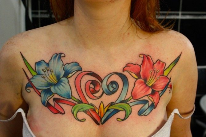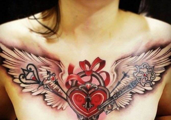Floral motifs, hearts and wings, butterflies and elegant patterns are the most popular solutions for the chest among female fans of body art.