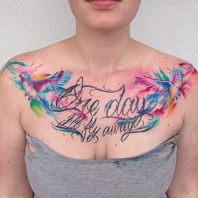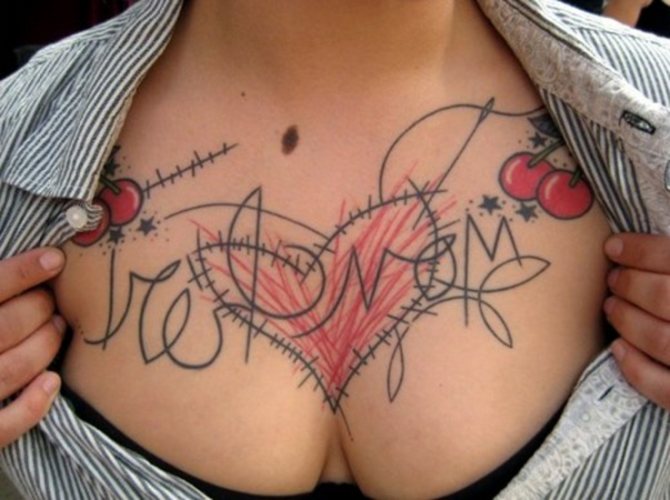 Interestingly enough, tattoos on the chest in the form of inscriptions are hardly in demand among a female audience.