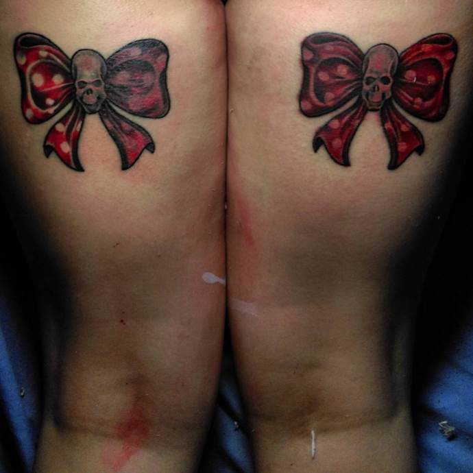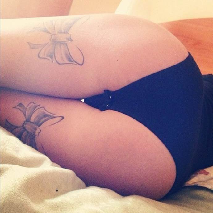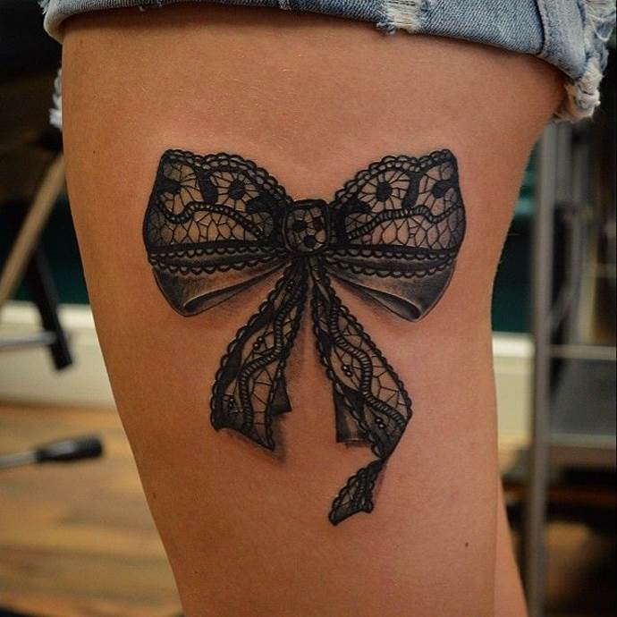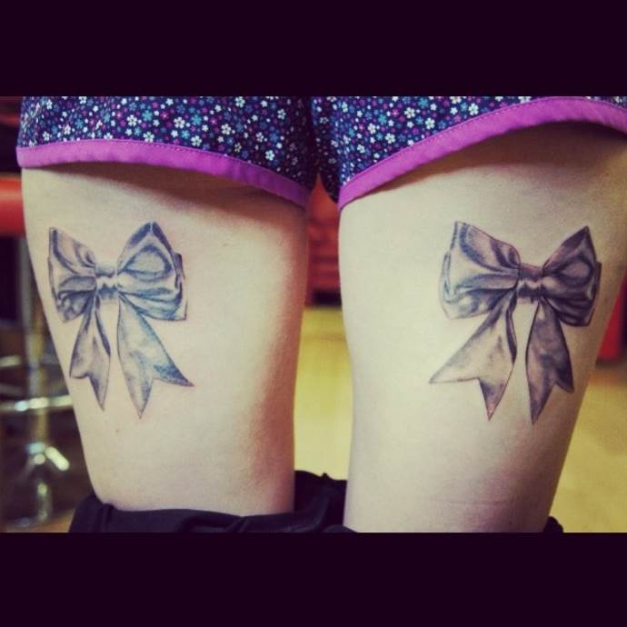 Popular place of application of the tattoo "bow" - the hips. The secret lies in the symmetry and mystery.