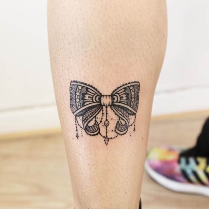 Tattoo bows on the legs on the back emphasize the feminine shape of the figure and attract men. This fact will undoubtedly please single ladies who are in search of the other half. Below you can see photos of work from masters around the world.