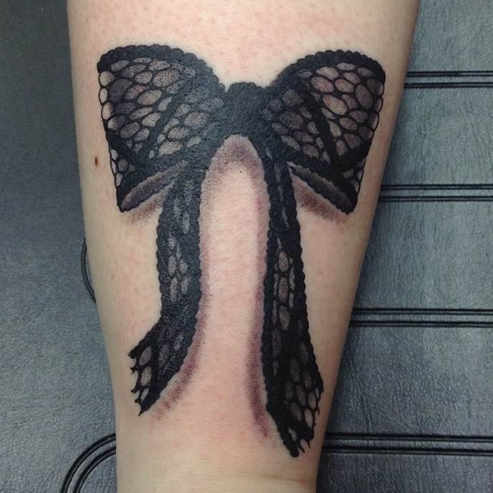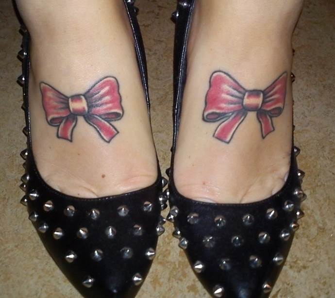 The bow (bow) can be depicted in different colors, both separately and in the composition of various objects and inscriptions. He embodies female sexuality and romanticism, so the bow tattoo is more likely to be found on the skin of a girl than anyone else.