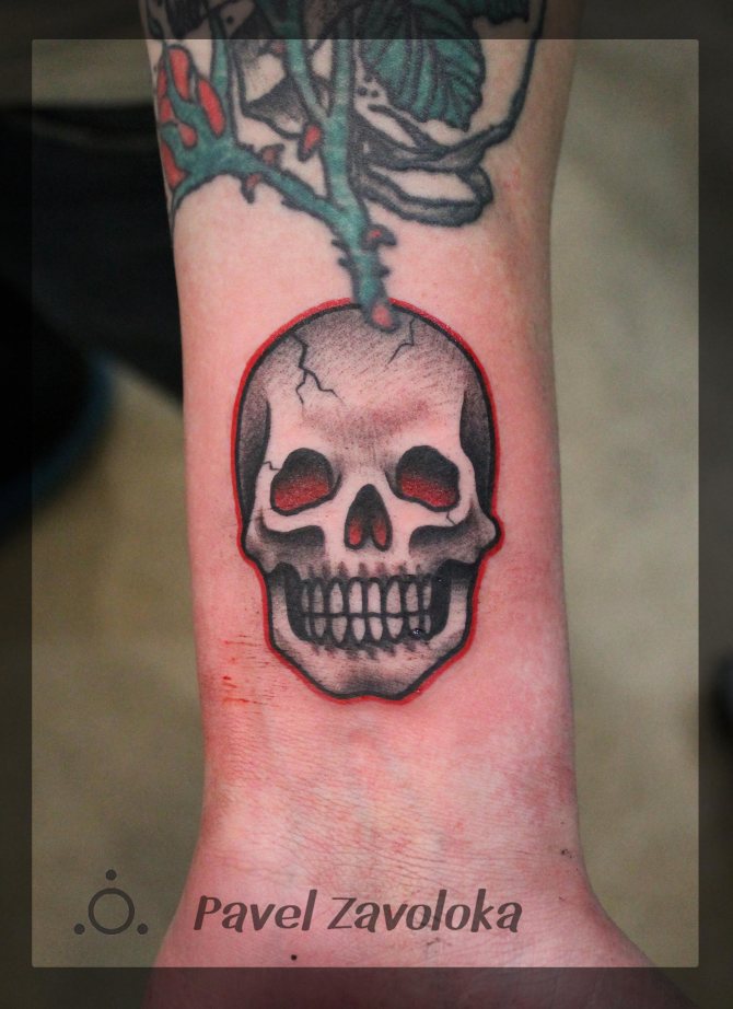 A skull pierced with a dagger indicates a desire for revenge by striking back at an opponent. A skeleton head painted on high-voltage poles represents danger. Such a tattoo warns others of the danger emanating from the wearer of the wax drawing of the blow. The Indian skull shows unity with nature and the desire to engage in self-knowledge.