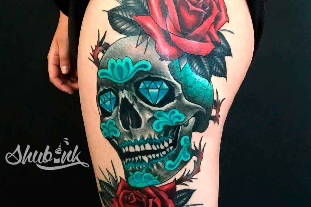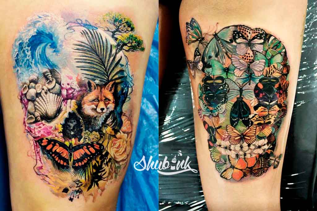 - Even the most somber tattoo more vibrant and interesting do bright colors, so bring a little juicy colors to the skull, and it will be perceived very differently!