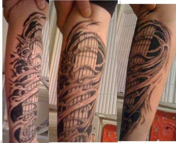 - Biomechanics. This style will suit men, because they need a tattoo more masculine.