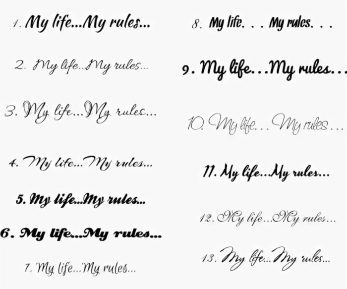 There are quite a few online sites where you can enter a phrase, a slogan for a tattoo, see how it will look in different fonts, choose a writing language. Next, you need to consult with the tattoo master. Each person has individual anatomical features. The same font will look differently, for example, on the hand of a woman and a man. The master will make adjustments for a specific person, advise where it is better to localize the inscription on the clavicle.