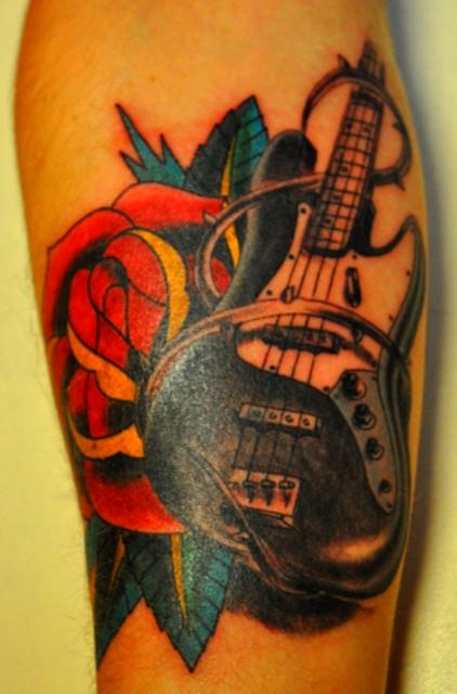 What will be your guitar - you decide. Definitely Colored tattoos (Petersburg) win over black, black and white.. They look new, modern and cool! Even if you decide to emphasize your brutality, color tattoo will come in handy.