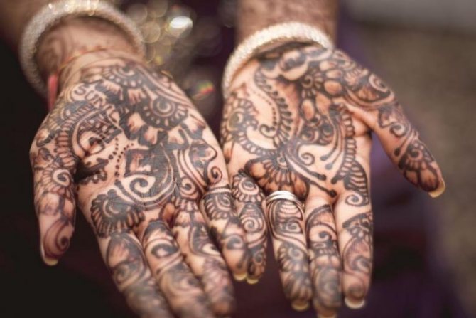 Traditionally, Indian designs covered the hands, feet, and face. Today, with the advent of permanent tattoos, there is no rigid attachment to areas of the body. The main thing is to determine the size of the future drawing and place it so that all the details were visible.