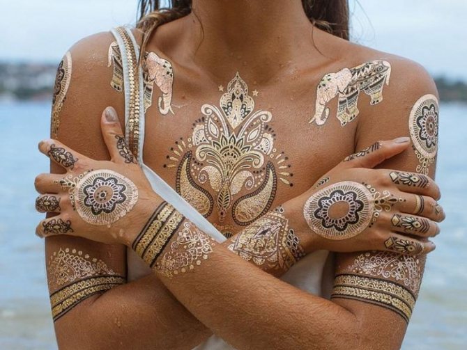 Only noble ladies could afford to decorate their bodies with patterns. This is explained by the fact that Indian women sought to identify themselves with the wife of the god Krishna, who is considered the ancestor of tattoos. The tattoo, in a sense, was supposed to emphasize the extraterrestrial purpose of the beauty.