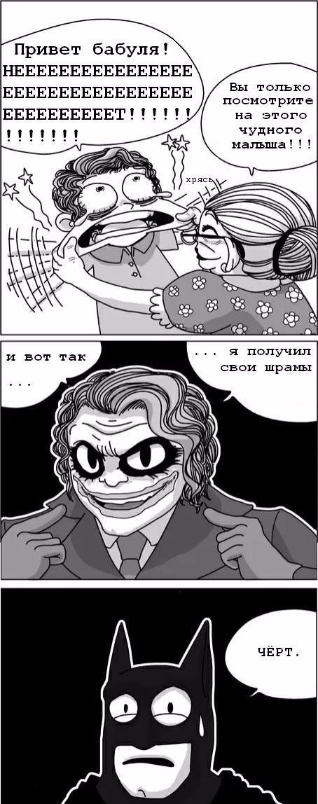 But the main mystery is the Joker's mysterious smile. Oddly enough, there is no normal explanation for its origin anywhere. So let's take a dispassionate look at a few of the most common theories (trying to avoid a complete thrashambre with blood and juvenile involvement).