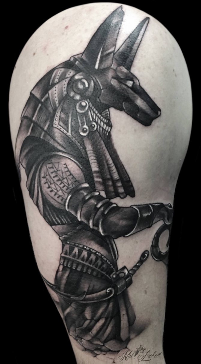 Although the meaning of a head painting with Anubis is different for each wearer, the main meaning of the macabre tattoo is protection and protection from injustice. It is a signal to others of punishment for those who offend the wearer of the protective symbolism.