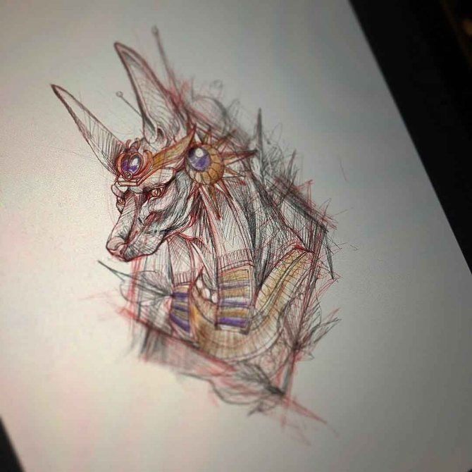 Anubis, a tattoo (sketches of the mystical deity can be drawn independently) - a distinctive sign of a balanced personality. An unusual picture can hide a serious meaning, but also act as an ordinary decorative symbol. It all comes down to what purpose the owner of the tattoo pursued when choosing a sketch.