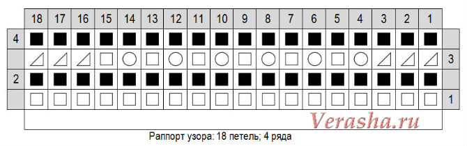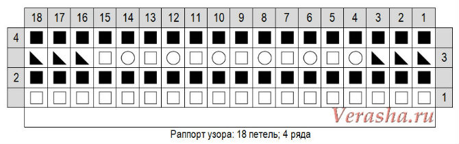 Knitting description: Collect the number of loops, a multiple of 18 plus 2 leading edges: 1 p.: front stitches, 2 p.: back stitches, 3 p.: 2 stitches together - 3 times, (rip, 1 face) - 6 parts, 2 stitches together face. - 3 р. 4 rd: reverse st.