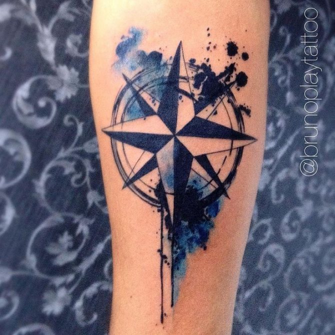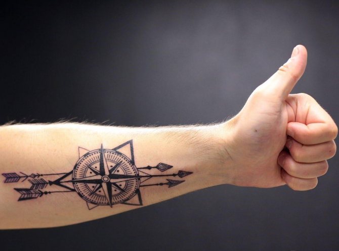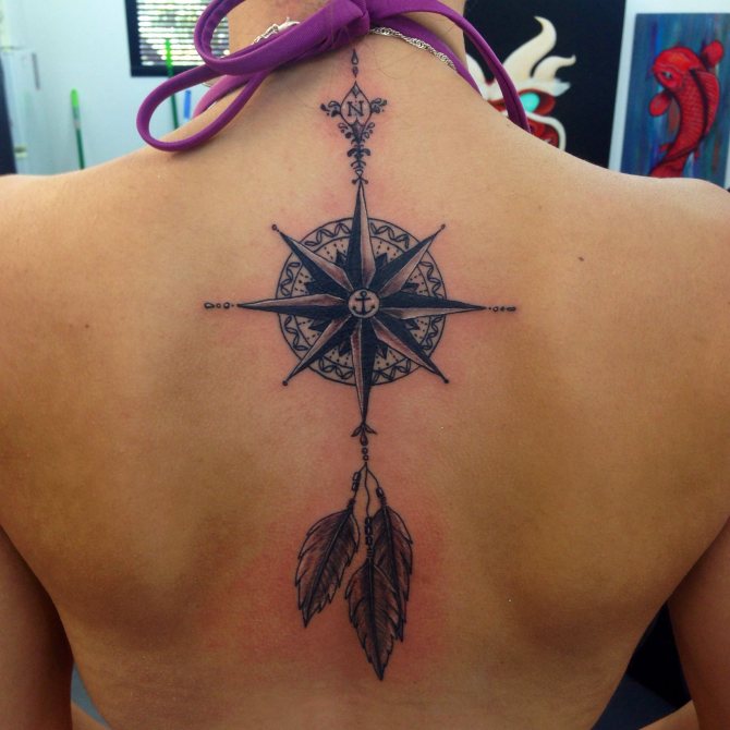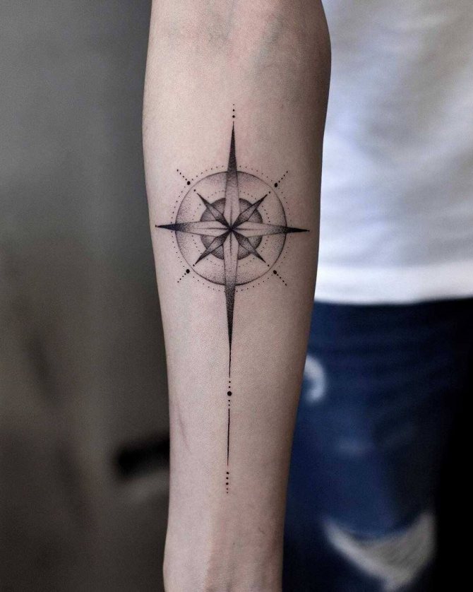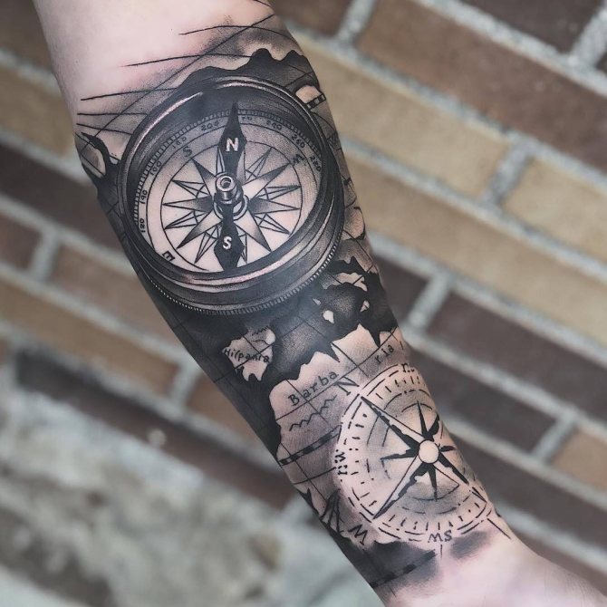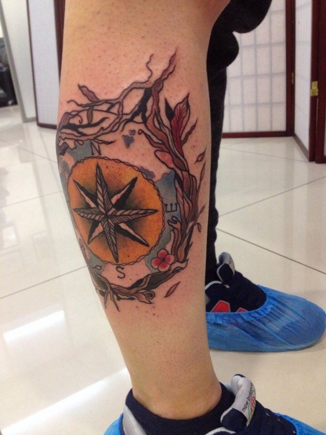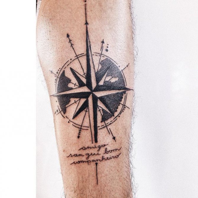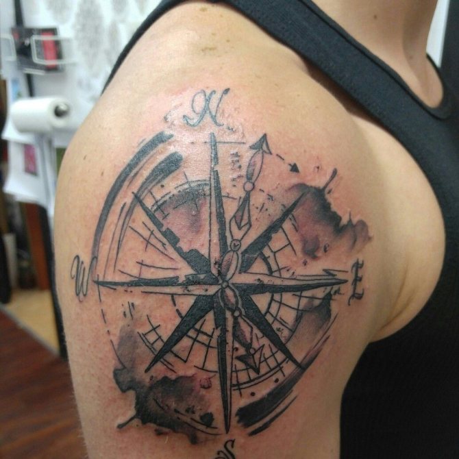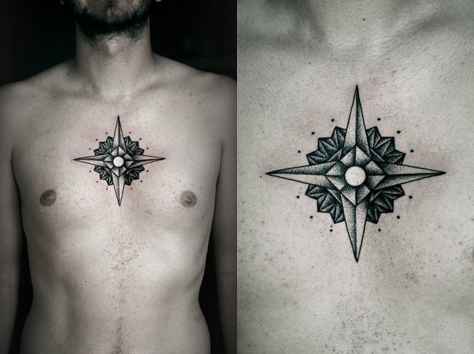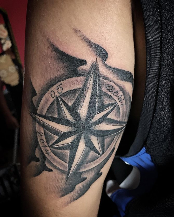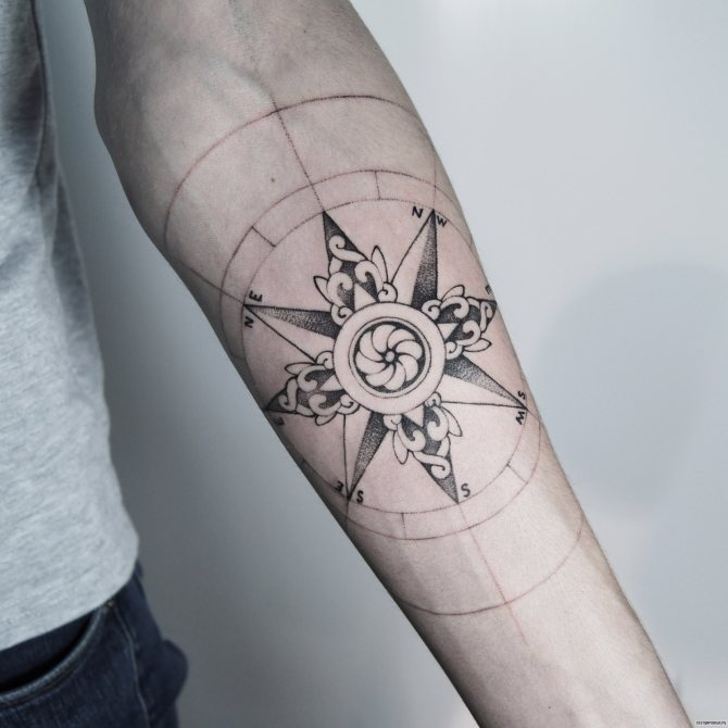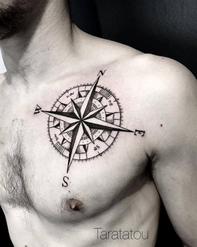 In general, a tattoo with a drawing of a wind rose can be used, both men and girls, because the value of the nail is universal. However, in earlier times, there were no female sailors, in fact, as now, so the picture among the female sex is not particularly popular. As for men, for them it is a symbol of determination and independence, which serves as a talisman and helps in achieving goals.