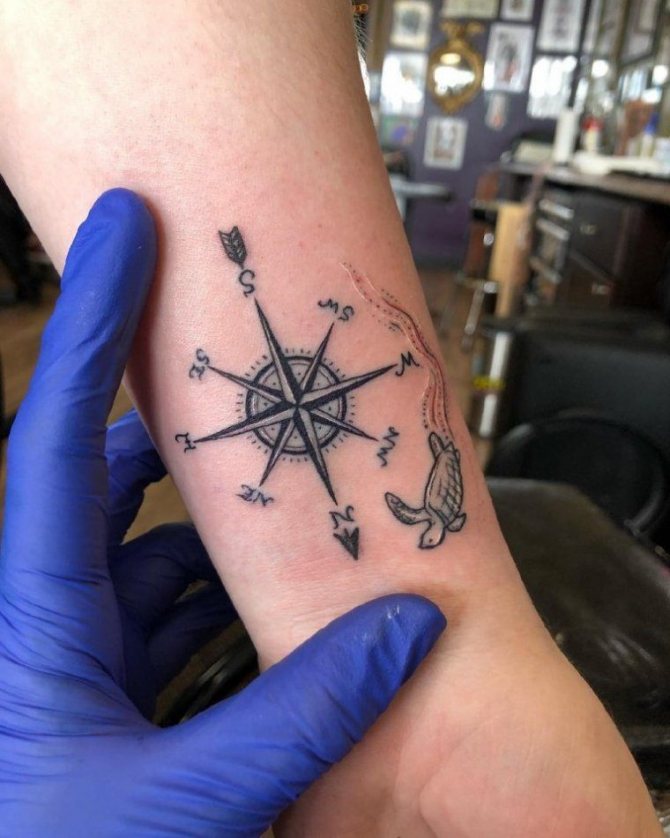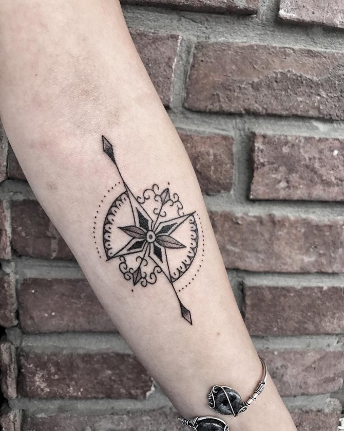 Rose of the winds is a tattoo that can carry a rich and varied meaning. This symbol can symbolize not only the sides of the world, but also the temperament of a person, the number of seasons, the elements and so on. In general, such a symbol serves as a variety for any of its manifestation. Wind Rose helps to establish a balance and find the golden mean. Such a sign is perfect for those who are fond of travel and like to feel independence from others or certain circumstances. Also, the tattoo of the wind rose can serve as a motivation that everything depends solely on ourselves.