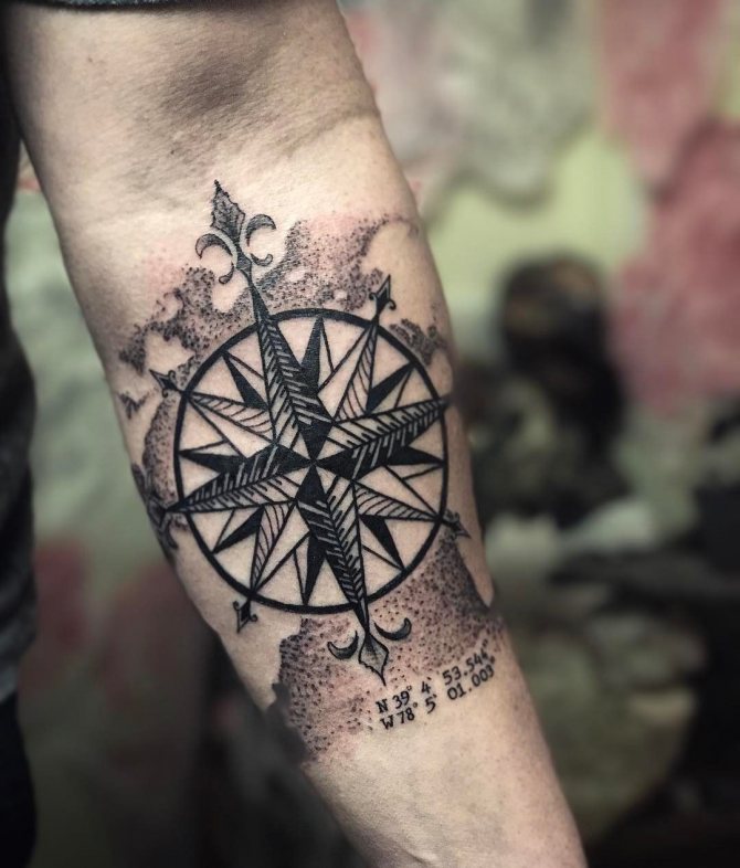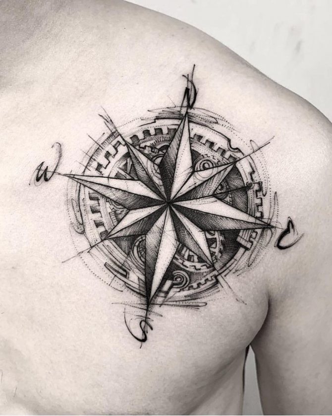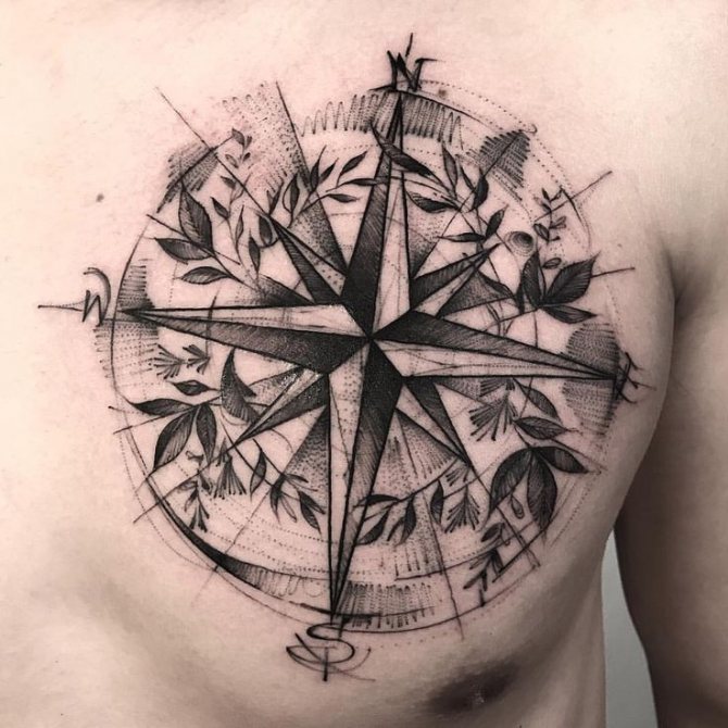 Tattoo is a great way to express your inner world and show the main features of your character. Among the incredible number of images, most often people prefer drawings of the botanical or animalistic sphere. However, you should not forget about the various peculiar symbols, signs and other elements. Among all the images of such a direction, a rather popular and widespread option is considered a tattoo of a wind rose. This symbol represents a polygon. The body sketch is very popular among men. Girls also sometimes perform such drawings on the body, because the rose symbolizes sincerity, love and beauty. What else does this symbol mean? Where is the best place to perform the tattoo? About this and much more we will tell below.