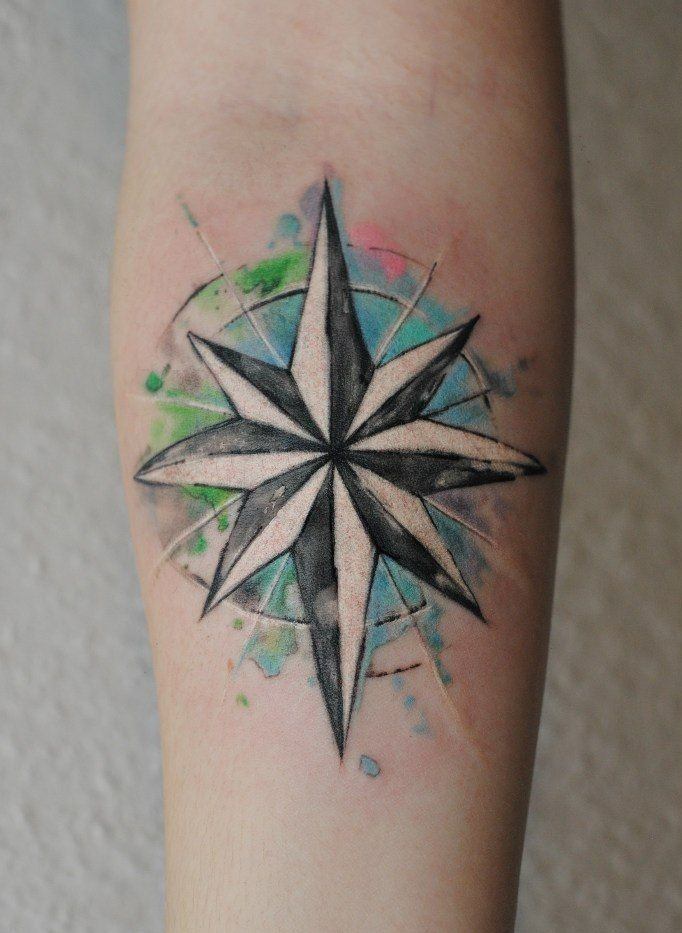 Another popular meaning of the Wind Rose tattoo is the path of life. Such a drawing can mean its loss or vice versa acquisition. Thus, the tattoo can mean an increase in success in various cases and good luck of its owner. Wind Rose can carry a symbol of victory over various obstacles and difficulties, thereby demonstrating to others the well-being, confidence and determination of its owner.