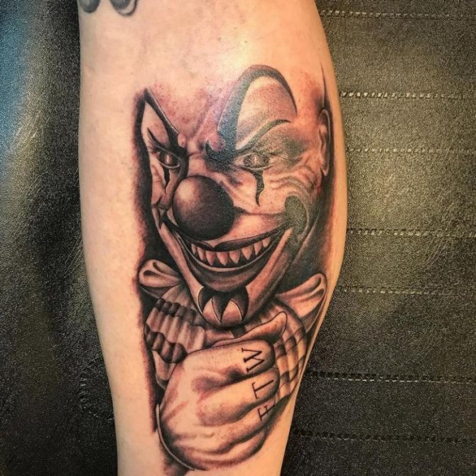 These heirs to tradition have long been the favorites of rulers of all stripes. Their sarcasm, mockery, wit, affectation and fearlessness stunned and attracted. In Russia only jesters were allowed to criticize and ridicule the sovereign and power. They could talk whatever they wanted. If the jester was too stupid and short-sighted and made the tsar angry, he was immediately deprived of his head. That is why only the most shrewd and cunning clowns remained at court. They managed to hide behind a veil of humor a sharp satire on the lives of kings. Often the rulers simply lacked clairvoyance to understand the true background of buffoonery speeches, in fact often, these people close to the government, understand it much more than the rulers themselves. That's why the tattoo with clowns - is, in some ways, a symbol of leadership and primacy. After all, not for nothing, even in the card games Joker has a higher value than the king and queen.