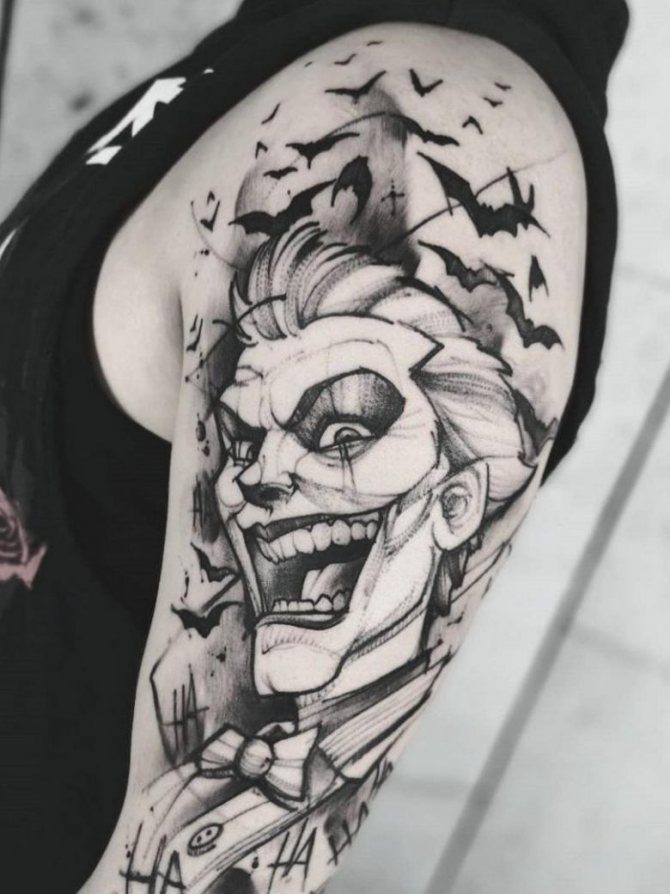 Many people do not realize the multifaceted meaning of the Joker tattoo, so nowadays you can rarely meet a person with this image.
