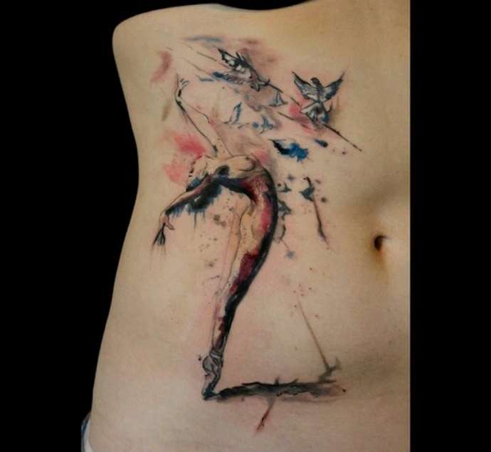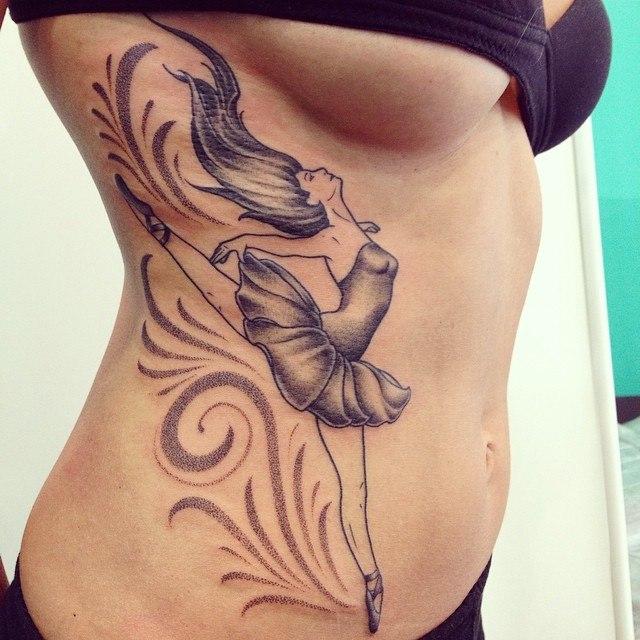 Tattoo in the form of a ballerina is quite common in Europe and Russia, in the same eastern countries do not create it on their bodies.