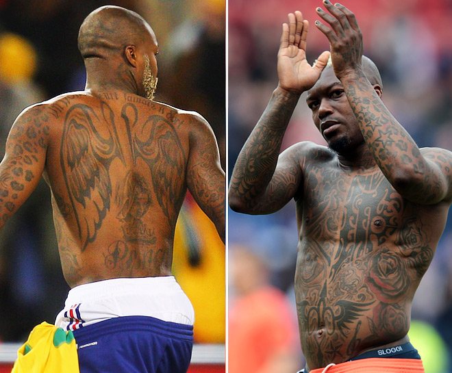 Cisse is in principle one of the most "decorated" footballers of our time, and he has no equal among black players. Almost his entire body is covered with tattoos. Naturally, Jibril spent more than a month on this painting. Of course, new drawings appeared gradually. Among the first were the wings on his back, for which he was nicknamed "the archangel" in France. Cissé does not have many thematic tattoos, mainly various patterns, symbols, etc. Among the most original are cat paw prints on one arm and leopard spots on the other.