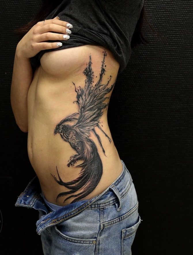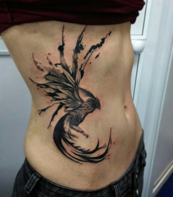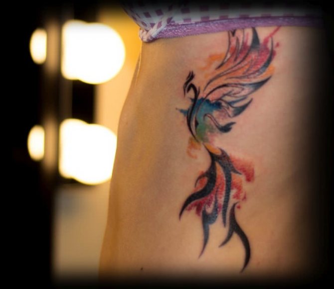 Women's tattoo with a phoenix is able to emphasize the individuality of its owner and add to her image a certain zest.