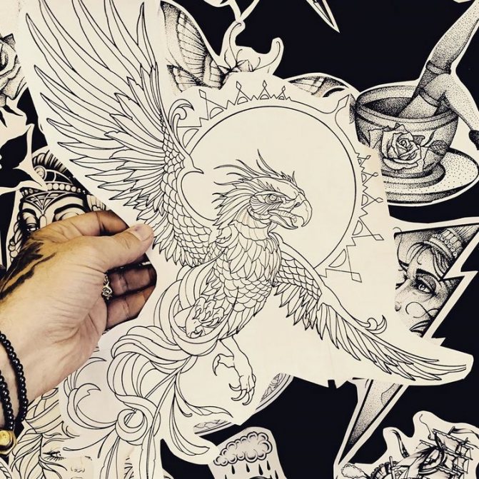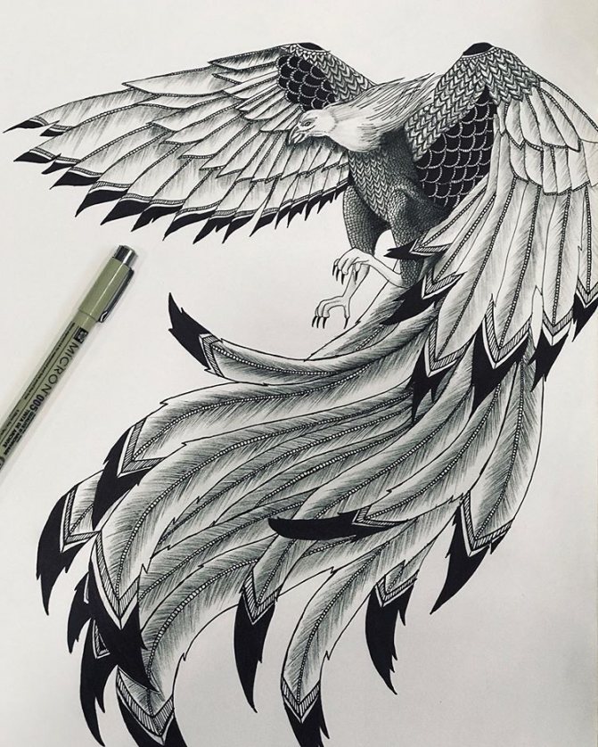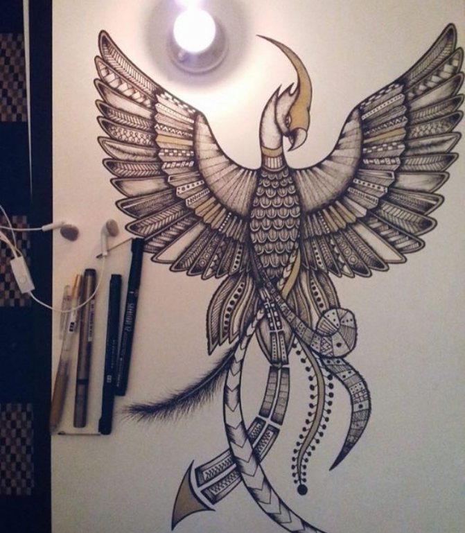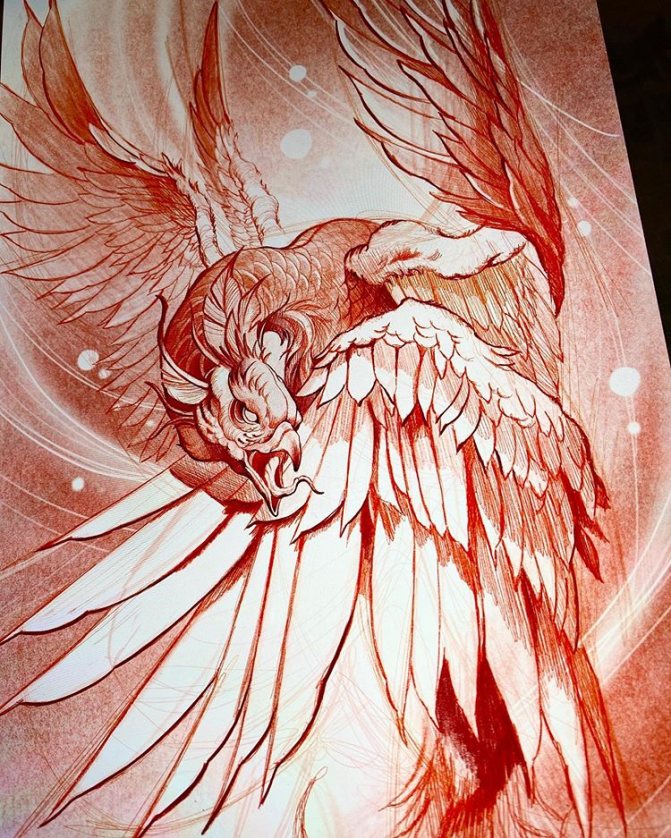 The phoenix bird tattoo, the meaning of which we are considering, is often identified with similar legendary creatures, such as the Firebird among the Slavs, the Simurgh bird among the Persians, the Fengghuar bird among the Chinese. Although they all have similar meanings, they are different creatures, and it is advisable not to confuse them. The symbolism of the birds is almost the same, but the appearance is slightly different.