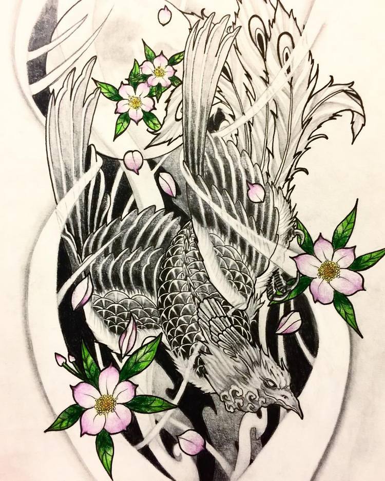 Phoenix Tattoo in Japanese Style
