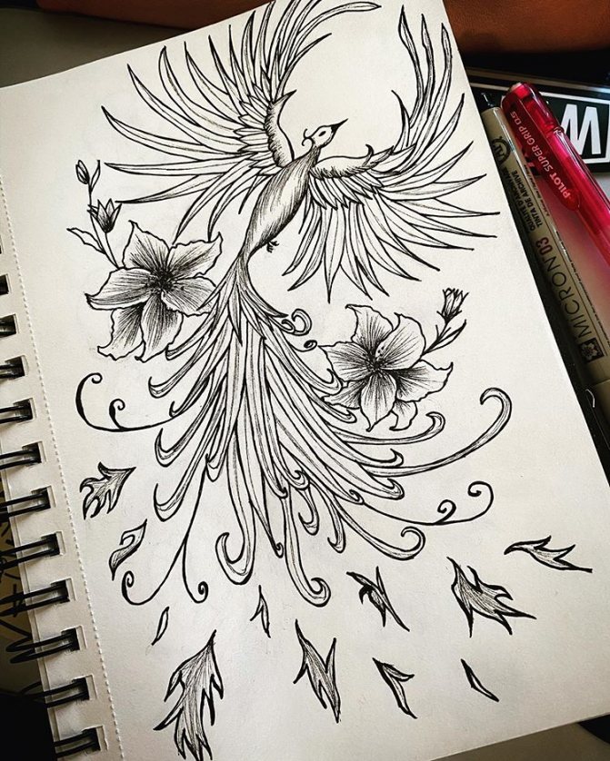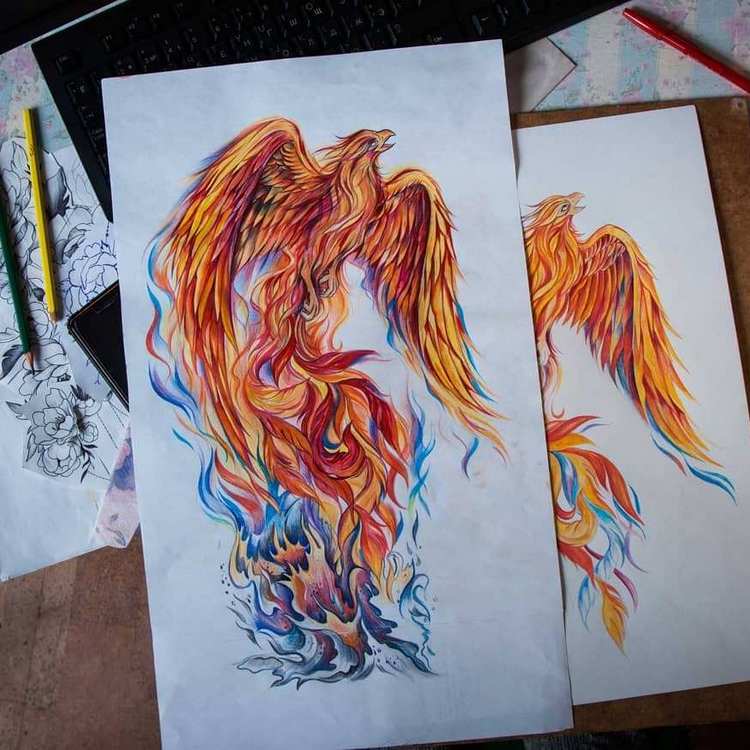 The phoenix drawing is a great tattoo option that is suitable for both men and women. The popularity to the body image of this bird came when tattoos became part of art. Bright colors, subtle lines, and the ability to experiment are all major criteria that help keep the world in demand.