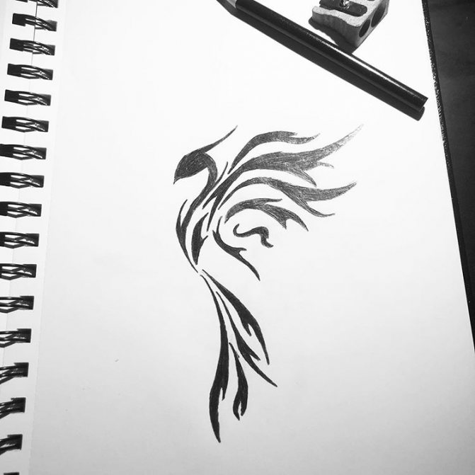 If there is no desire to impose a large tattoo, it is possible to stop at a more compact image of a phoenix and place it on the scapula.