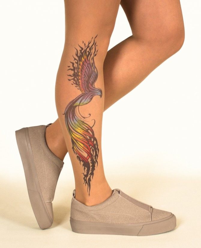 Tattoo of the phoenix on the leg