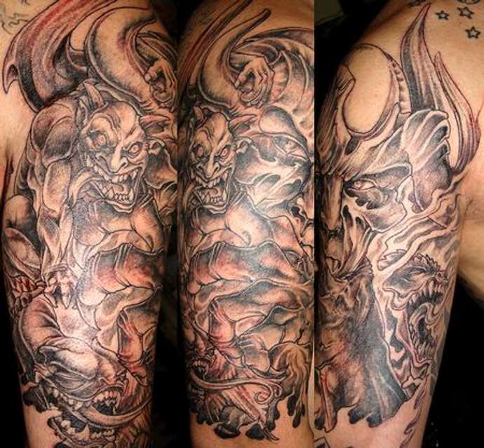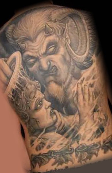 Of course, quality work often does not dispose to reflect on the meaning of the tattoo and just makes you admire the work of art. But still, what do you think, is the demon or the devil depicted in the photo?