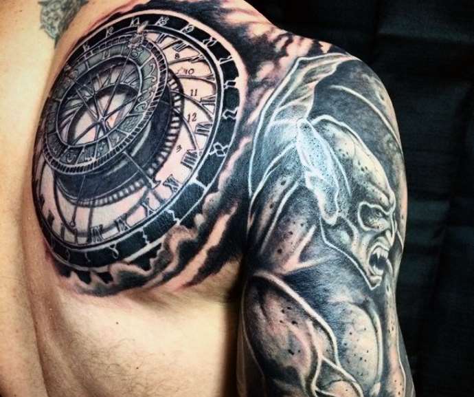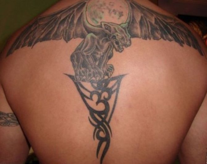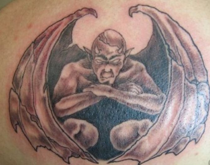 However, the most common meaning of the gargoyle tattoo - demonic origin in man, the tendency to vices and awareness of this. Also, the gargoyle symbolizes the forces of chaos, curbed by the divine beginning, and its intimidating wings and claws are designed to protect its wearer. If we turn to mythology in architecture we can often see these creatures on the shoulders of sinful people.
