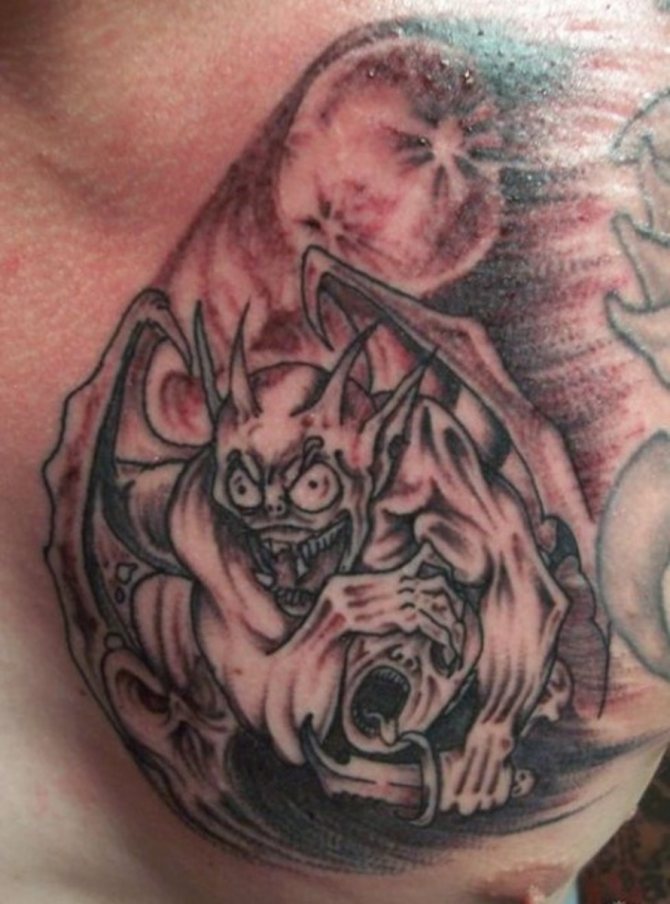 Tattoos have long ceased to be the attribute only sailors and robbers, in the modern world they decorate themselves and ordinary people to emphasize their individuality or to remind yourself of anything. In this case, the meaning of the gargoyle tattoo can serve its owner as a brake when he again decides to stumble.
