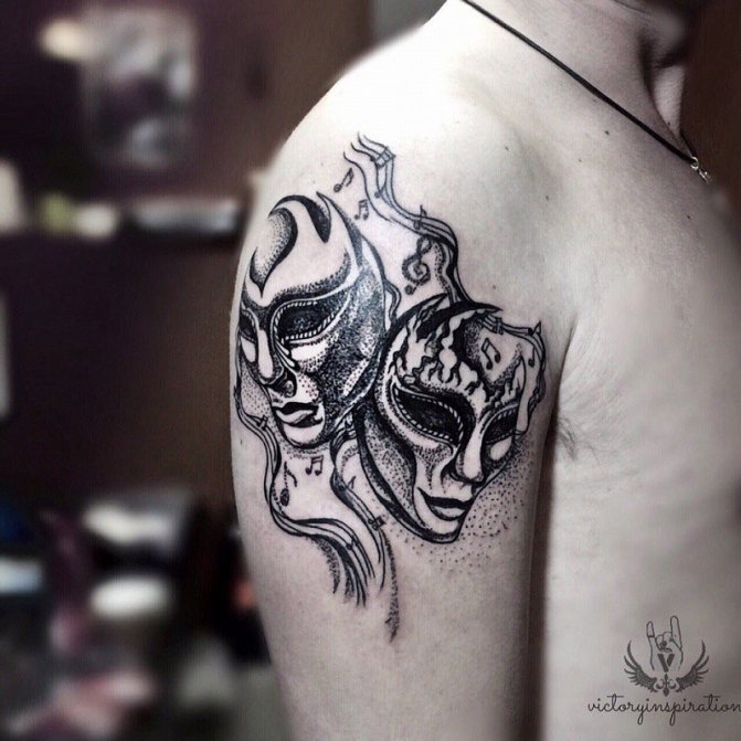 Tattoo two masks - the meaning of unpredictability in the actions of people, the fickleness of character.