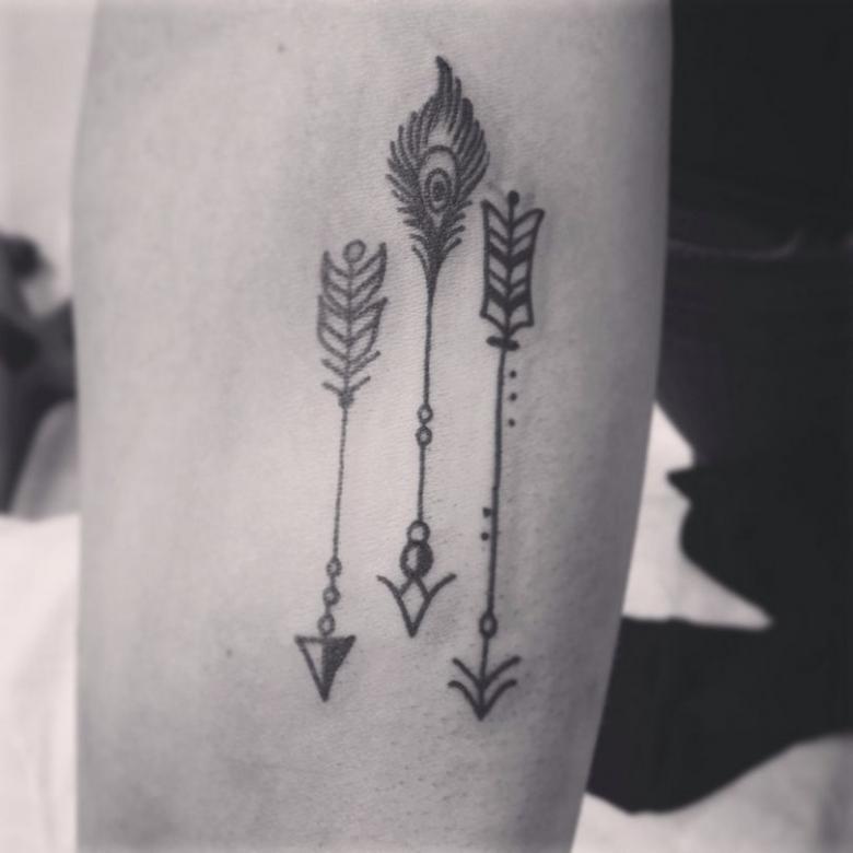 Girls often give preference to bright Boho-style arrow drawings. These are not arrows of war, they are symbols of the divine rays of the sun, clarity of mind and getting out of the box of ordinariness.