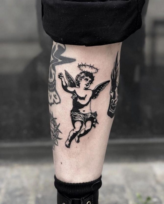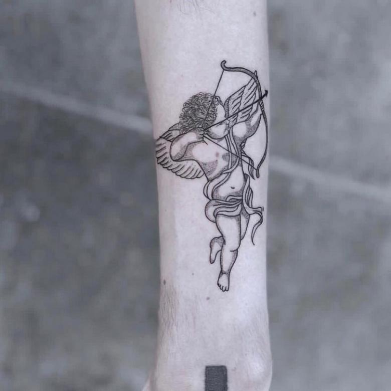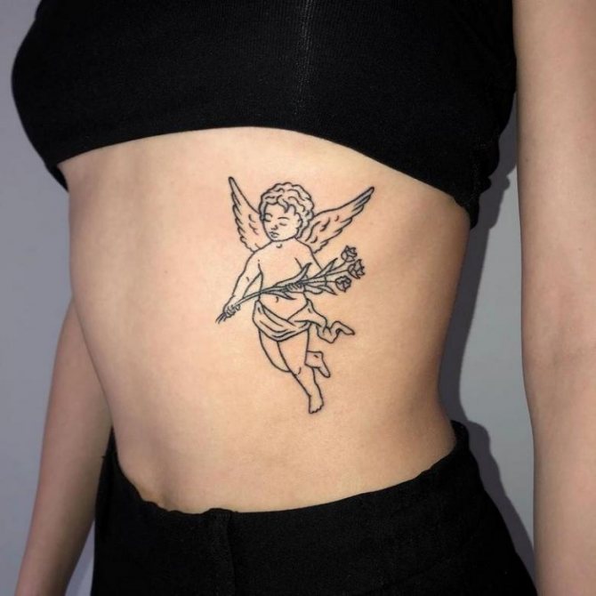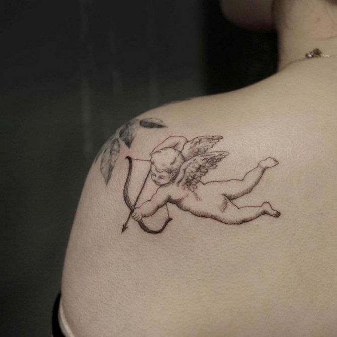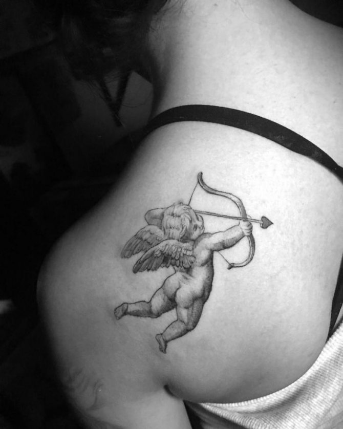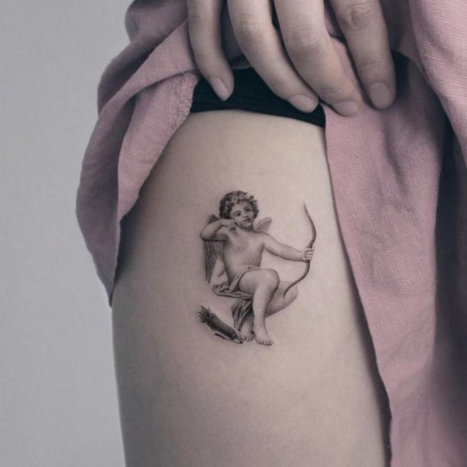 Tattoos with Cupid are very popular with girls, as he primarily symbolizes sensuality and love.