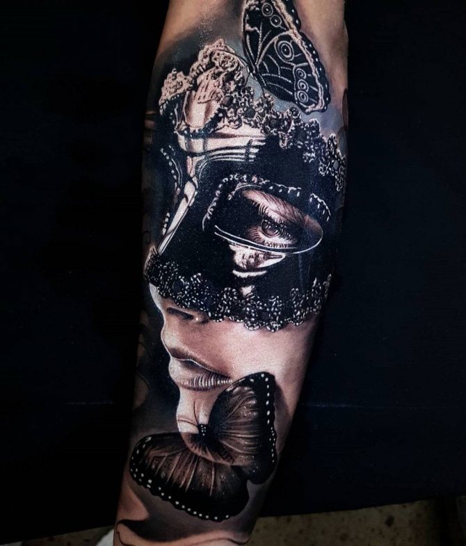 Tattoo with the image of two masks: options of drawing and its semantic load