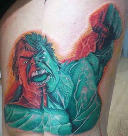 - The Hulk is characterized by abrupt changes in mood. Composition with the hero will show flamboyance and unbridled temper of the owner of the tattoo.